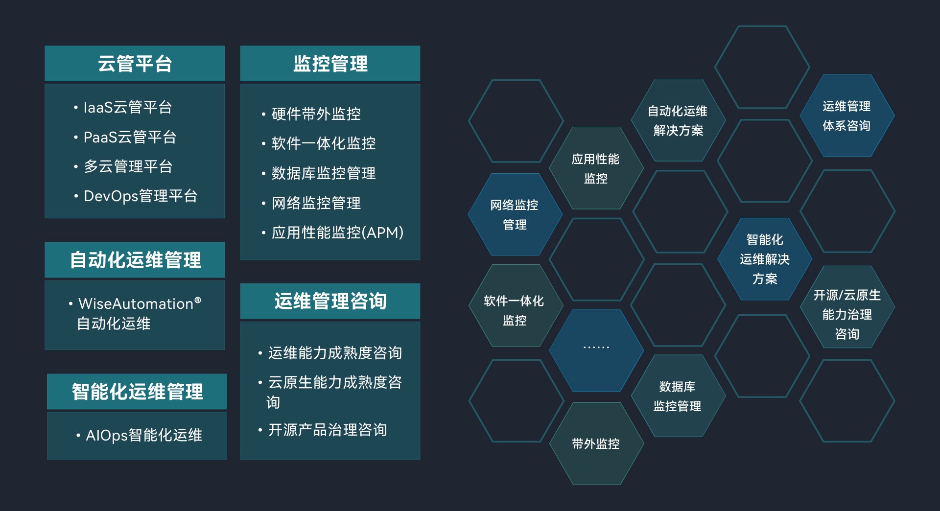 胜游(中国)SHENGYOU·官方网页版在运维管理产品领域提供硬件、软件监控、自动化运维、智能化运维和安全管理等产品解决方案,帮助客户实现对基础设施、应用程序和服务的全方位监控、反馈和管理。同时,胜游(中国)SHENGYOU·官方网页版在运维支撑平台领域提供云、大数据和智能平台中台解决方案,为客户打造基础设施管理平台,确保客户在各类运维需求下,都能够得到充分的支撑和保障。
